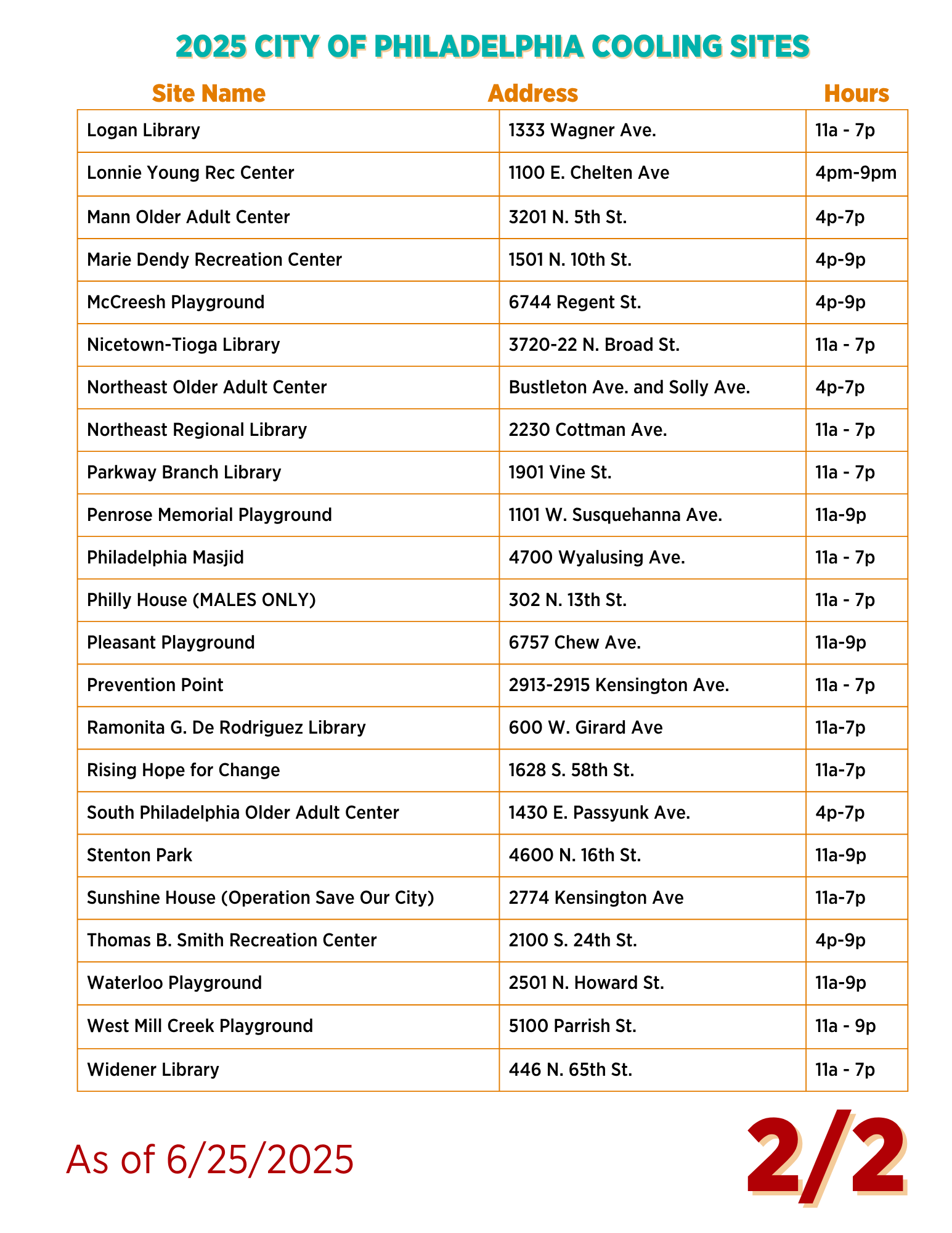 Here is a list of indoor cooling sites. For a full list of cooling sites click here.